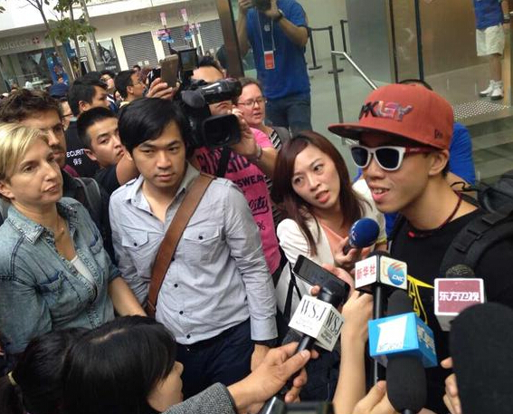 而排在第一位的Hong先生也在8点整的时候,顺利的成为了铜锣湾苹果店首个拿到iPhone新机的用户,当然他也成为了所有媒体的焦点。在采访中Hong表示新的iPhone的大屏幕吸引了他,他并不认为5.5英寸的Plus会不好操作,相反的更大的屏幕可以给他带来更好的视觉体验。