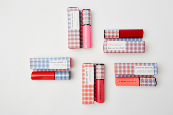 too cool for school全新概念的水晶闪烁著色唇彩 Glossy Blaster Tint,集染唇液及唇彩的优点於一身。蕴含 30% 水分及 70% 油分的黄金比例,使其比一般的染唇液或唇膏,更保湿滋润,能完美地遮盖唇纹,令唇部立体、饱满;亦比一般的唇彩,显色度及持久度较高,能保持亮丽唇妆长达 10 小时。涂抹时,当中的闪亮胶囊会於唇上释出瑰丽的色彩及闪烁的光茫,让双唇犹如水晶般发光发亮,显得格外诱人。