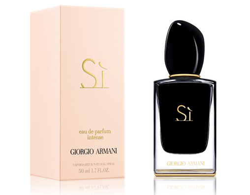Giorgio Armani全新Sì Eau de Parfum Intense,把Sì的时尚西普香调(chypre)昇华至更高质感,变得更富深度。加入诱人的香草豆(vanilla bean)、黑色木材与琥珀树脂(ambery resin),令花蜜的芳香精华略显深邃。从果实的最中心处提取的黑加仑子甘露森林精华 (blackcurrant neo jungle essence),散发迷人的明净感,再被芳香的佛手柑(bergamot)和蜜柑(mandarin)精油,以及一抺丝嫩的小苍兰(freesia)进一步燃亮。明亮通透的玻璃瓶之中,精心剪裁的线条被金环边饰围绕,然而一层绒哑的黑色衬裡在瓶子之中,令瓶子添上高雅嫵媚。