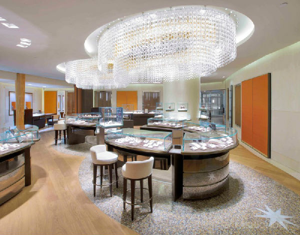为了提升顾客的购物体验,店铺特别以橙色缟玛瑙拱门划分出高级珠宝、婚嫁、男士及配饰专区,让顾客可以安静地慢慢欣赏这些瑰宝。