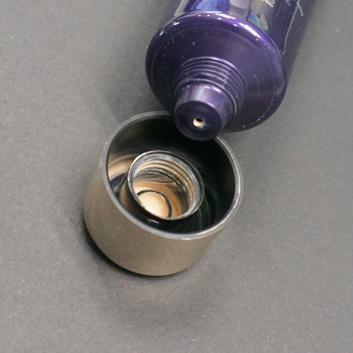 评测结果:整个瓶身是塑料软管瓶身,可以挤压,瓶盖是旋转式金属色瓶盖,这样的设计能很好的密封产品,防止产品外漏。但是由于瓶口有些大在拧开瓶盖获取产品的时候不容易把握用量,所以需要轻轻挤压获取。我们没有拧紧的后果就是粉底液会跑出来在盖子周围,所以记得每次拧紧。