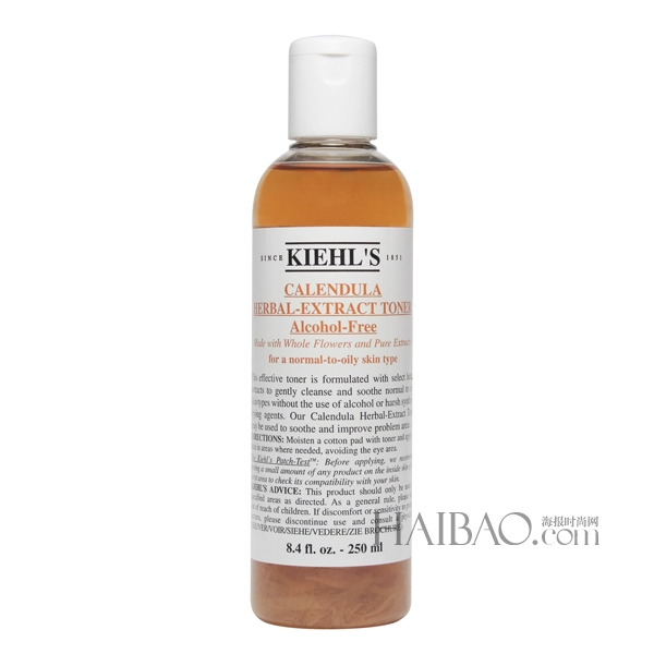 20世纪60年代推出的金盏花水,含有天然金盏花成分,因其舒缓、清爽的特性成为科颜氏 (Kiehl's) 爱好者们的经典的爽肤水之选。