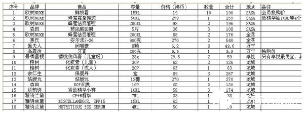 香港购买金首饰,护肤品,药品归来,sasa换购NUXE欧树鲜奶霜15ML才19港币哦,我觉得很划算,其他大家看表格吧!