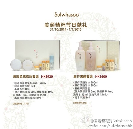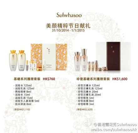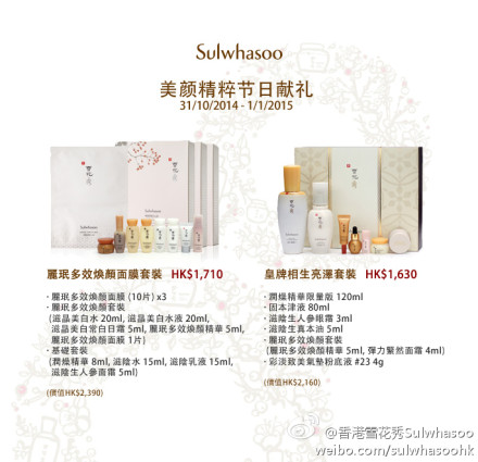 香港购物:HK雪花秀圣诞节套装及价格详情