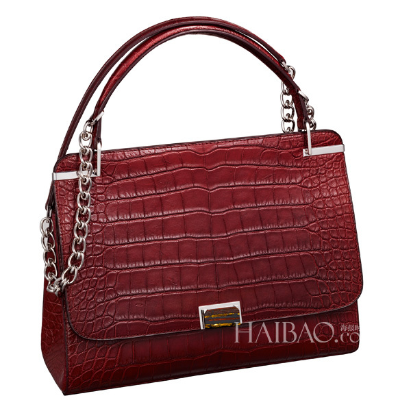 酒红色鳄鱼皮手袋
