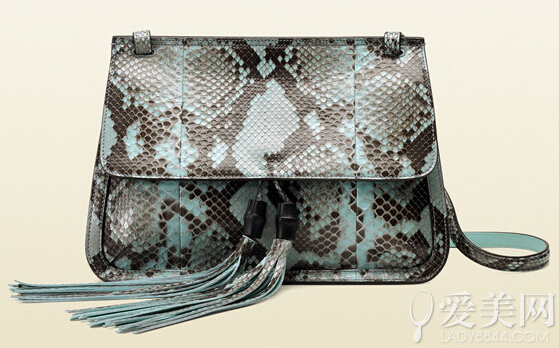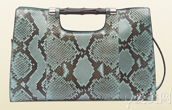 古驰Gucci 2015bamboo daily系列天蓝色蟒蛇皮提包