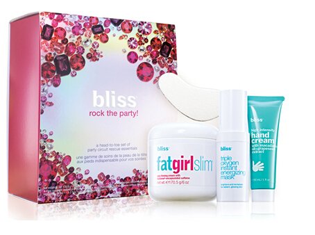 bliss贴心准备瞬间充电的救急护理,以流线胖女孩纤体乳霜、三重氧气活肤急救面膜、三重氧气活肤急救眼膜及特强滋润护手霜为组合,让你派对后随即享受高级水疗般的护理。