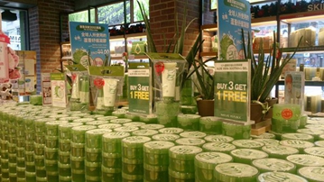 如图所示,现在芦荟胶买3送一。还有一种优惠是买芦荟系列的水乳和水和洗面奶,送一盒芦荟胶(也是买3送一。)