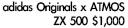虽然临近年尾,但品牌的联乘动作并没有停止。除了独特的印花图案系列外,它亦分别找来日本流行品牌ANOTHER EDITION和时尚名所ATMOS推出简约的设计。其中品牌便和ANOTHER EDITION选以经典型号ZX500為设计蓝本,并以羊毛和高品质的麖皮构成鞋身,加上选用红、白和蓝色这些经典配色,便令鞋款洋溢出复古的时尚气息。至於与时尚名所ATMOS的联乘创作便选以经典跑鞋ZX700為基调,更选以独特的卫衣材质和麖皮打造鞋身,呈现另类的经典和独特的气息。