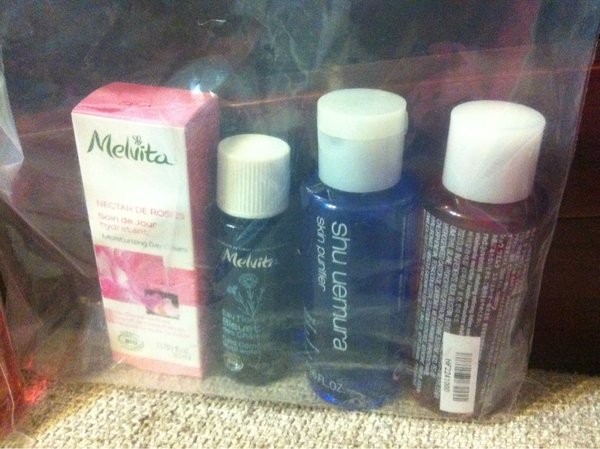 植村秀卸妆油50ml各两支,1支Melvita花水28ml,日霜10ml