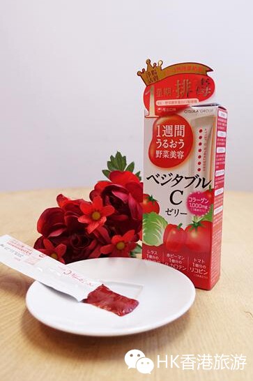 日本新登场野菜胶原蛋白口服啫喱,一开即食,口感 “嚥嚥靭靭”,集排毒及美颜于一身,1支相等于3个蔬果营养。高效抗氧化能力的茄红素再配合膳食纤维、维他命C及虾青素,即有效清除体内毒素及有助刷新肌肤纤维组织,使肤色红润剔透。