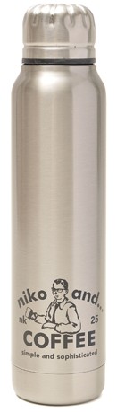 日本杂货品牌nikoand...最近带来一系列自家设计的咖啡用品,其中可找到这个银色暖水瓶。暖水瓶设计简约,没有多餘的花纹或按钮,用十多廿年也不老套。瓶身上除了找到品牌的名字外,更可见到拿著咖啡杯的伯伯及代表NIKO的数字「25」,在平凡中散发出一丝可爱的气息。虽则印有「COFFEE」的字样,但為它注入其他热饮,也同样能享受到这份冬日之暖。