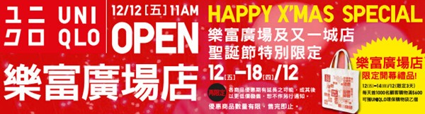 香港打折:UNIQLO乐富广场店及又一城店圣诞节特别限定独家优惠海报(12月12至18日)