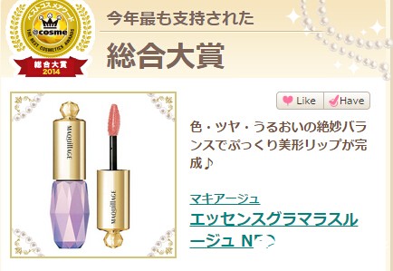 千呼万唤始出来,日本COSME2014年度美妆大赏的榜单终于出炉了,相信小伙伴们也是盼望已久了,榜单众多,小编就来跟大家一起看看,今年上榜的都有哪些好物吧: