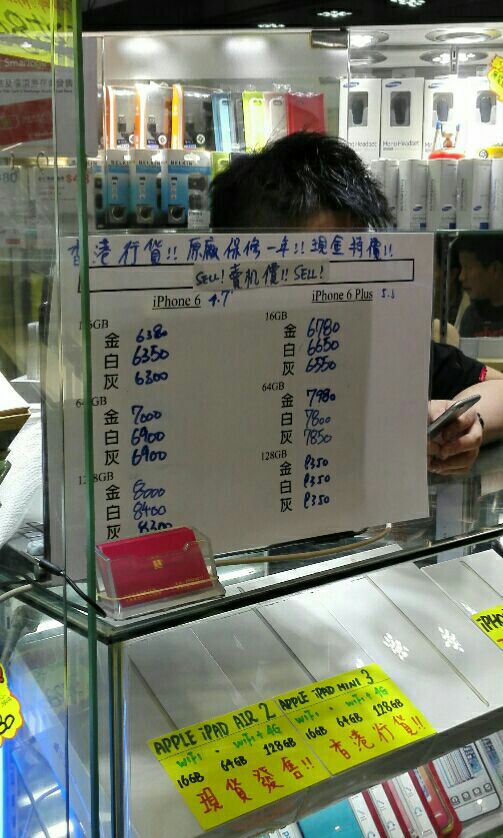 香港先达广场的实拍Iphone 6报价图、供土豪们参考!