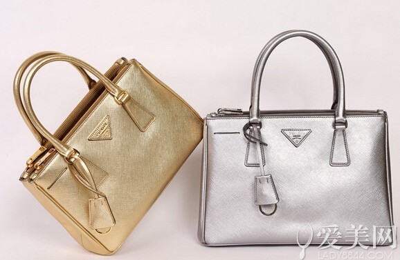 经典的Saffiano包包除了黑白跟红色,还布上了金银的色彩,圣诞气氛满满的。