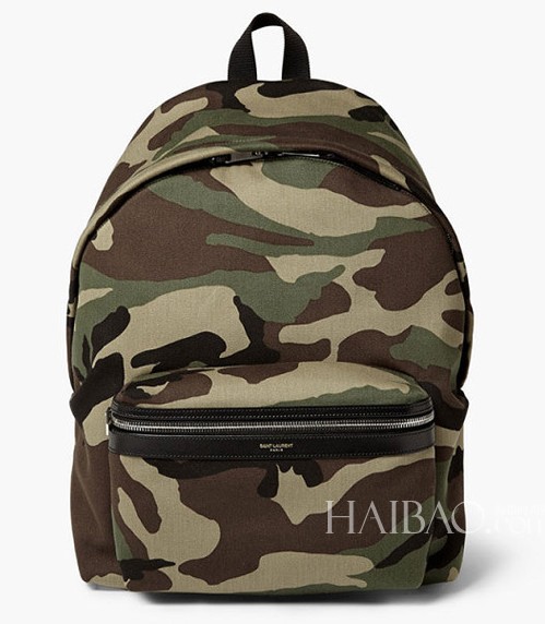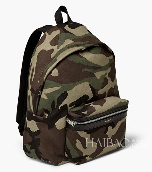 迷彩元素一直是时尚界的宠儿,很多品牌也会相应推出各种单品。圣罗兰 (Saint Laurent) 在今年冬季也推出了迷彩元素的双肩包,以帆布为主用皮革作为点缀,背包正面的只用拉链口袋作为设计,十分简洁,又不失硬朗的态度,更加休闲、时尚。