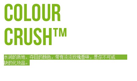 COLOUR CRUSH亮彩唇膏系列水润的质地、夺目的颜色,带有淡淡玫瑰香味,是你不可或缺的化妆品。