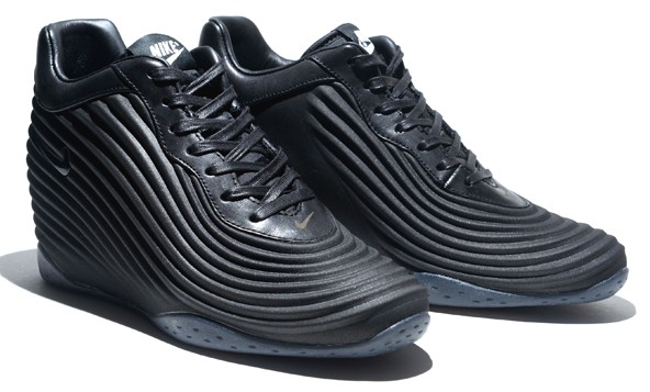 自前阵子NIKE推出以高跟鞋为概念的球鞋DUNK SKY HI后,旋即掀起女生球鞋的新浪潮,而多款人气名作如AIR FORCE 1、ELITE等更先后被SKY HI化,大收旺场。最新NIKE就再次引用LUNARLON泡棉科技,并制作了全新的鞋款LUNARWAVY SKY HI。其鞋身採用LUNARLON缓震的型态为灵感,营造出俐落的线条。为增强耐用性,各细节如鞋边等均选用皮革作点缀,再加上全黑的色调,令整双鞋子洋溢浓厚的时装味。