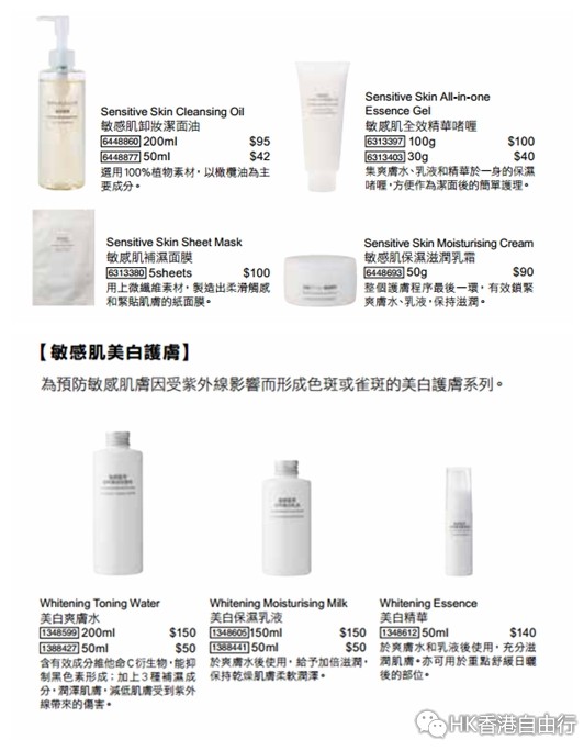 无印良品选用天然滋润成分和天然水,再加上其他补湿滋润的功能成分,制造出适合日常使用,而价钱合理的护肤品。