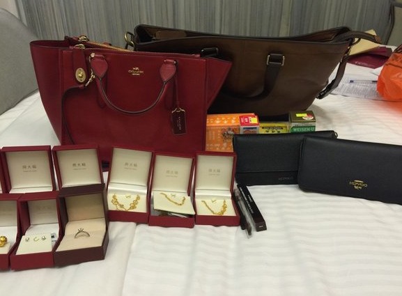 黄金周大福的,买多了送券,直接抵了,还送了小礼物,因为买的不大所以买多点,嘿嘿,我比较喜欢黄金,香港铂金贵还是回上海买吧,钻石耳钉是换购的比较合算。coach买的多直接办了会员卡9折,两个包包和两个钱包就1万左右。