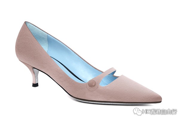 The Mary Jane:以麂皮重新演绎的经典搭带高跟鞋,配以50毫米鞋跟,更显时尚。2种颜色可供选择:深蓝色或粉红色 (HKD 5,450)