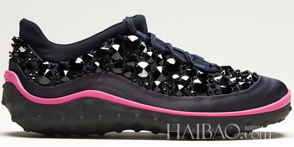 继运动风不断的演绎,越来越多设计师将时尚与运动两元素相结合,为此缪缪 (Miu Miu) 也顺势推出以经典跑鞋为原型的全新鞋履——Astro Running系列。集靓丽外观与实用功能于一身的缪缪 (Miu Miu) Astro Running系列不仅看上去魅力十足,穿起来也更为柔软,并富有弹性。分层式胶质鞋底设计源于缪缪 (Miu Miu) 经典样式,鞋底突出的小圆胶粒设计令此款鞋履焕然一新。它们看起来既像只刺猬,又像神秘奇幻的海洋生物。鞋面以工艺绸缎精心制作,并覆以用亮片和水晶手工打造的群星图案。脚踝处采用合成橡胶材质,与脚部完美贴合。