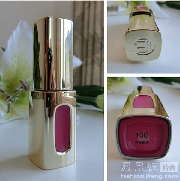 最近迷上了《武媚娘传奇》,不是因为那拍烂了的历史固定格式有看头,完全是迷上这部剧中美出新高度的妆容,特别是那些妃子们的亮眼唇色,太娇美有木有?不知道你有没有发现,剧中美到惊艳的必须是玫红色,无论身为才人的武如意还是老谋深算人韦妃都有用过,不得不惊叹真的是美到没朋友哇!这么美的唇色必须败来一试才可“解馋”,预感这部戏会让这个唇色红透2015。综合各项指数我入手了有着唇膏的纯正浓郁色彩,又有着唇蜜的高饱和莹润光泽的“巴黎欧莱雅纷泽琉光奢润唇釉 ”的 106色,即“玛丽皇后”,也就是我要的玫红色。