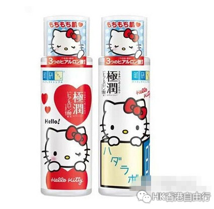 肌研极润保湿化妆Hello Kitty限定版:为了庆祝极润系列化妆水在台湾上市五周年,肌研推出了两款以Hello Kitty限量版化妆水