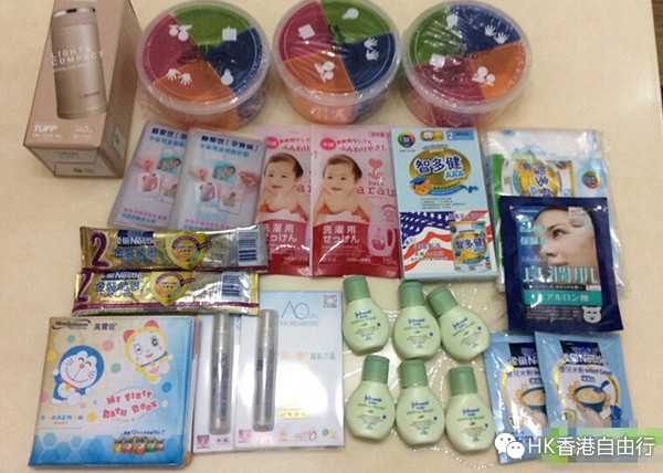 第一次去BB展没有经验,赠品拿得不多,惠氏和美赞臣是比较好的,可转。(1)美赞臣只要微信关注公众号就可以送四色食物盒,我拿了3个,如果再facebook赞荷花还送台历、育儿杂志、婴儿润肤露等等小东西。(2)惠氏,只要填资料就送900克惠氏妈妈奶粉和DHA8粒装1瓶,但一定要妈妈去拿,爸爸不行。雪印是听讲座送待产套装和妈妈包,因为要排队听课我就没去。还拿了能恩奶粉试用装、雀巢米糊、清洁喷雾、儿童围兜、75ml婴儿洗衣液等等。