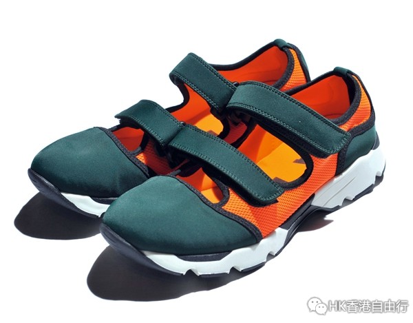 事先声明大家如果去看MARNI本年的春夏季造型照会找不到这对鞋的踪跡,原因是MARNI的主脑CONSUELO CASTIGLIONI在最初的想法是只放到女装系列中,但谁不知反应热烈,而且更大多是男生,所以就顺应意见推出男生的型号。的而且确这双VELCRO FASTENING SNEAKERS外型真的与NIKE AIR RIFT有七成相似,不过MARNI却决定以圆头作设定,鞋身配上两条魔术贴,鞋型也设计得相当修长,素材上并刻意选用透气度高的尼龙制作,但最值得留意是鞋底部份,CONSUELO CASTIGLIONI用上拥有25年歷史的意大利胶制健康鞋底品牌GOMMUS,令鞋履的舒适大大提高,完美地将时尚、崭新与舒适三大轴心结合,绝对是夏季最佳之日常鞋履。