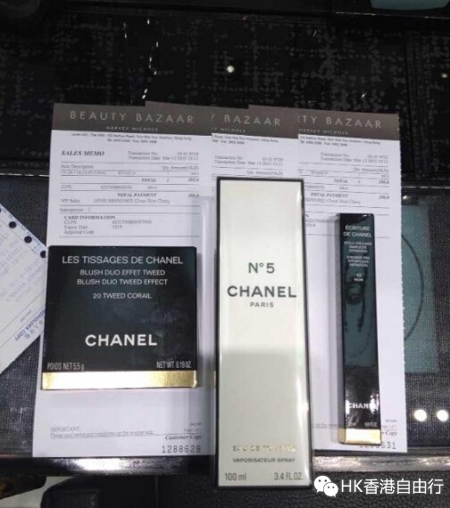 HK归来 香奈儿5号香水100ml及20号珊瑚色腮红、黑色眼线液笔,YSL14号唇膏