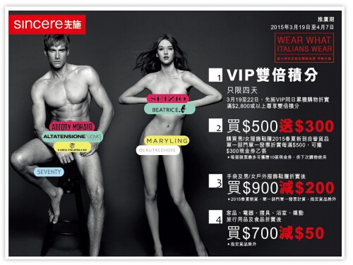 香港打折:先施百货最新推广购物优惠(至15年4月7日)
