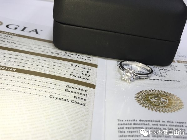9:30至中港城买闪闪,预算有限,而且平常戴的话也不想太夸张,所以裸钻就在60、70分档次选,戒托选了个简单又显大的款,颜色和净度都是选择性价比最优的档,最终选定0.71,F,VS2,3EX,none。小盒子设计真心独到,自带了个小灯,闪闪在里面简直能亮瞎眼,对了,第二天取戒指的时候送了两大一小盒小熊饼,满满的幸福感啊~~