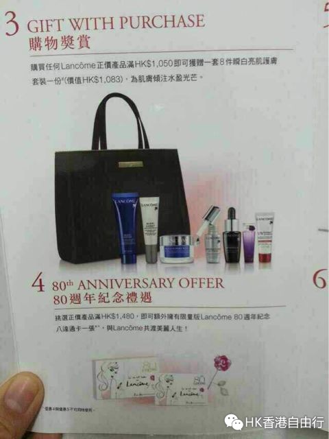 买满1480除送8件套,还加送兰蔻特别版八达通一张今年是兰蔻80周年。活动多多,满3600还加送灰色旅行袋。