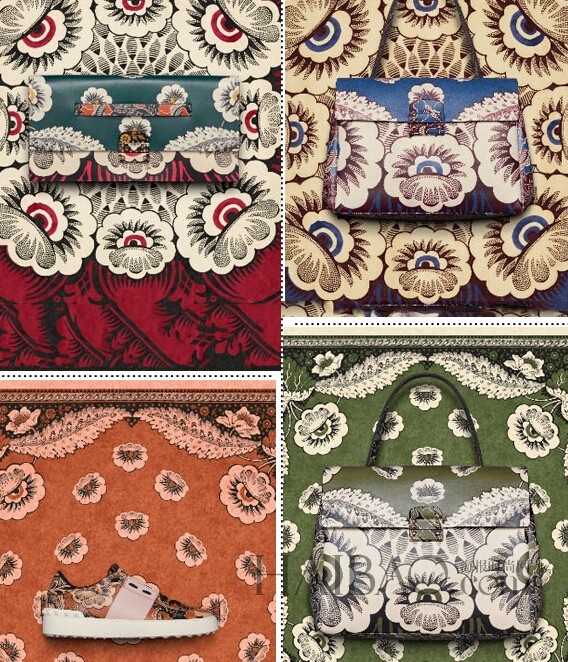 自从Maria Grazia Chiuri和Pier Paolo Piccioli两位出任华伦天奴 (Valentino) 的设计师以来,Valentino近两三季总是能看到精品出现,更是时装周秀场上备受期待的品牌之一。在2015春夏季,Valentino又推出了一个Mime系列手袋与配饰,是从法国古老图案中获得灵感,巴洛克的花朵绽放出奇妙的形态,纯粹的色彩,经过拼接与组合,演绎出对比冲突的美感,散发出浓郁的现代气息。款式方面都是近年来最为流行的一些设计,只是加上了更为好看的花纹,也让这些包袋、配饰焕发出全新的魅力。