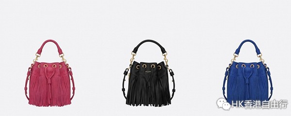 今年春夏除了流苏之外,水桶包款又即将卷土重来成为流行新宠,这种原本用来携带香槟衍生为流行包款的包包,帅气随性的外型打破一般方型包包的正式感,流露浪漫不羁的野性风情,与今年流行的70年代风潮不谋而合。而今年SAINT LAURENT新推出一款名为 Emmanuelle的流苏水桶包,直接把两种热门的元素加上一起,并且以法国版VOUGE总编辑Emmanuelle Alt的名字命名。