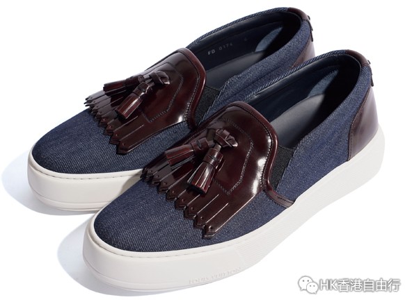 除此之外,本来属於绅士鞋领域的TASSEL流苏鞋履点缀,与带著浓厚街头风格的丹宁布料,两个看似风马牛不相及的主题,在LOUIS VUITTON眼中却成為一个有趣的创作元素!今季LOUIS VUITTON特别以丹宁布料配以呈蜡面小牛皮流苏TASSEL打造出全新休閒鞋履,一向小牛皮流苏TASSEL都是LOAFER的最佳拍档,但今年LOUIS VUITTON改以街头最常见SLIP-ON胶鞋底型态,还请来意大利鞋匠负责製作过程,创作出全新轻巧舒适,以及适合城市及旅游时著用的鞋履。