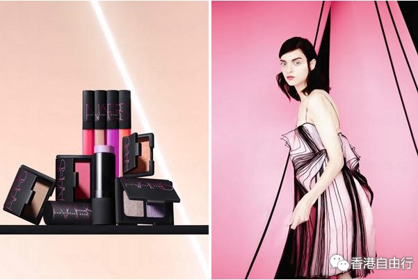 这个曯目联乘系列更是NARS 首个包含了眼影、胭脂、多用途胭脂条和唇彩等多样产品的时装品牌联乘系列。设计概念源自于霓虹灯和裸色调,结合了NARS标志性和大胆的彩妆理念,以及 Christopher Kane 前卫的设计美学。
