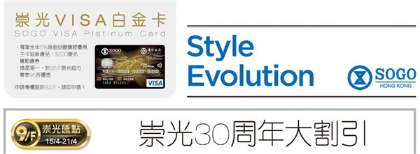 香港优惠:sogo铜锣湾店9/F崇光30周年大割引(15年5月15至21日)