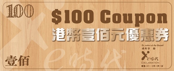 【现凡于e时代购物满HK$1000可免费获赠HK$100优惠券一张,购物满$500即可使用】