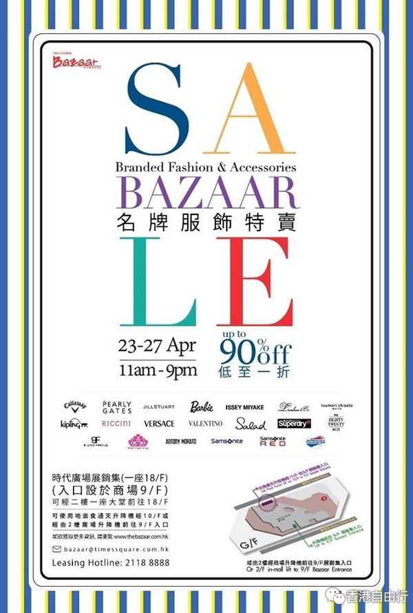 香港优惠:时代广场Bazaar 名牌服饰特卖低至一折(15年4月23-27日)