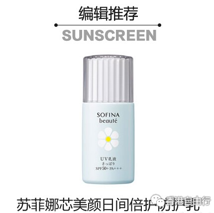 编辑点评:苏菲娜芯美颜日间倍护防护乳防晒效果长效持久,乳液般的质地清爽性高,放油性好,涂抹后吸收很快,但又不失滋润感。抗氧化性良好帮助肌肤抵御自由基侵害。