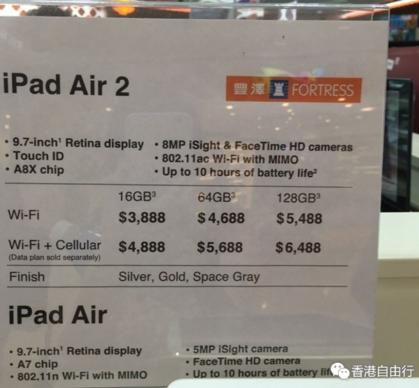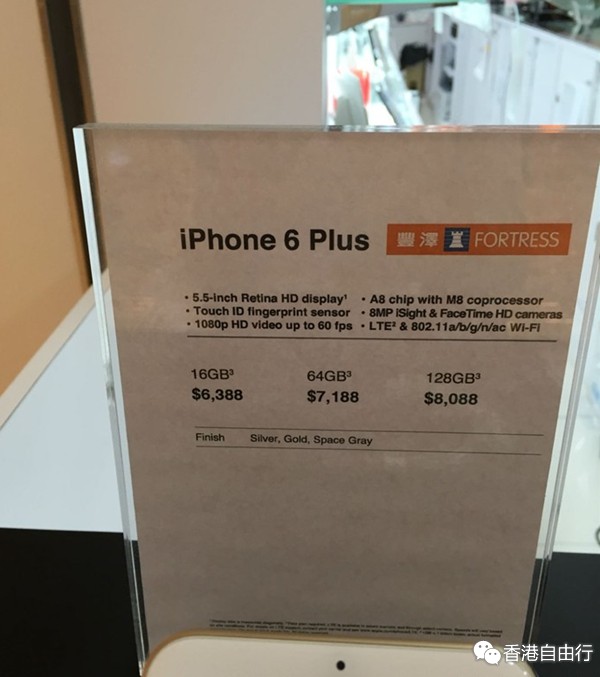 昨天去香港买iphone6和ipad air2,顺手拍下最新的价格(在丰泽店)(2015年4月23日);首先是iphone 6的价格:比我上上周去买便宜了100港币。