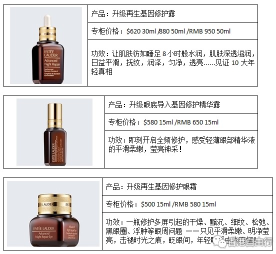 采购护肤/彩妆品成为去香港旅游的必要一个环节,而EL更是最受欢迎的品牌之一,明星产品ANR修护家族、雅诗兰黛眼霜、红石榴系列..下面小编给大家整理了一份价格表,还找了大陆专柜的做了对比!香港专柜除了价格有优势外,还不时会推出优惠活动,所以在港购买还是挺有优势的(价格只供参考)