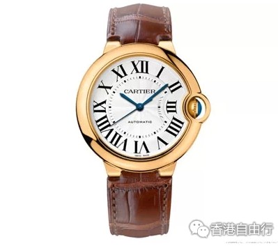 卡地亚蓝气球系列男士18K黄金、蓝宝石36毫米表款,型号: W6900356。