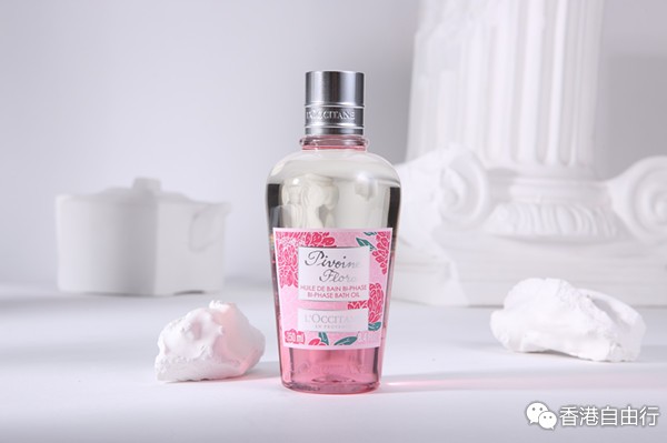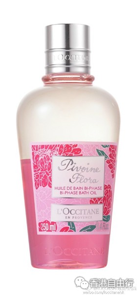 2015年欧舒丹香港专柜推出最新产品“牡丹花香浸浴油”,双重配方沐浴油,将暖水变成乳白色,甘油精华及葵花籽油令肌肤水凝柔滑。舒缓放松,形成柔和的的香薰浴,令香气渗进全身,将一天的疲劳一扫而光!(售价港币210元/250ml)