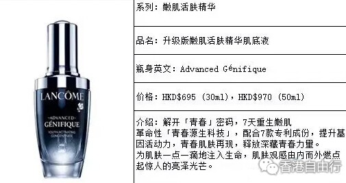 香港化妆品报价:Lancome兰蔻护肤品专柜价格表