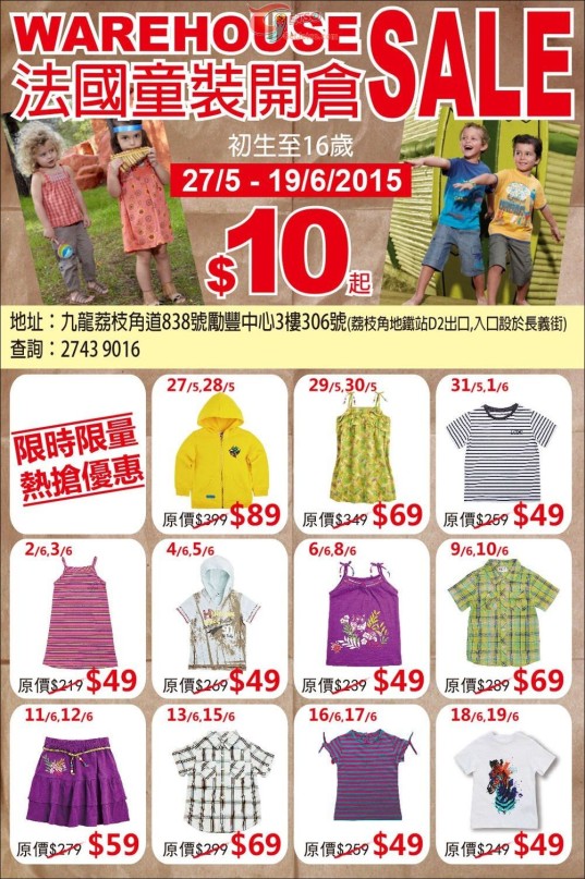 香港打折:La Compagnie des Petits 法国童装低至$10开仓优惠(15年5月27日至6月19日)