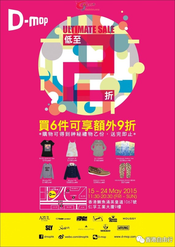香港打折:D,mop Ultimate Sale 低至2折开仓优惠(15年5月15至24日);